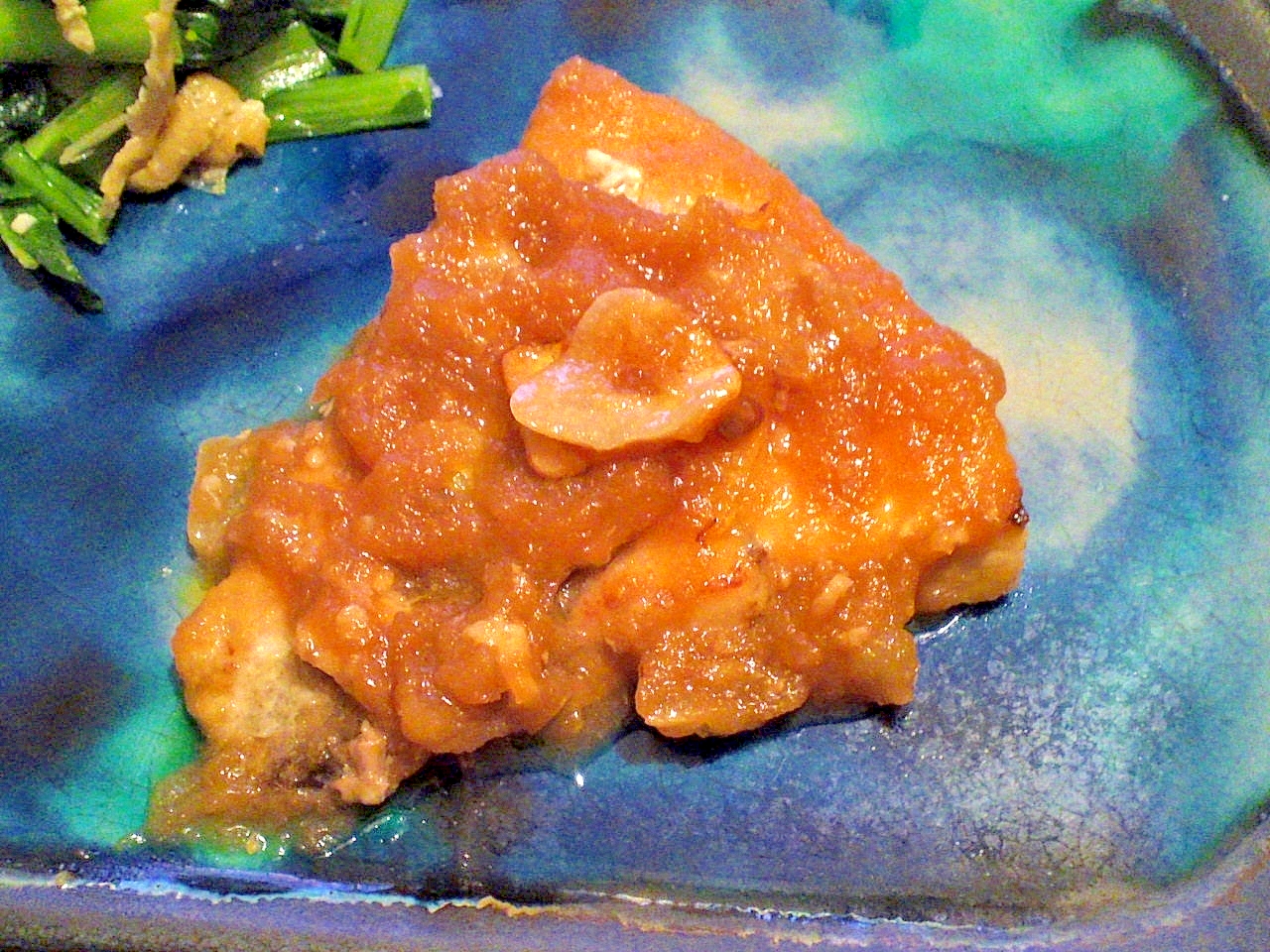献立 マカジキのステーキ蓮根グリル添え トマトサラダ 春菊の胡麻和え しらすおろしポン酢 茄子と厚揚げの麻婆炒め あおさのお味噌汁 舞茸ごはん 日本酒 Kajuの 今日のお料理 簡単レシピ